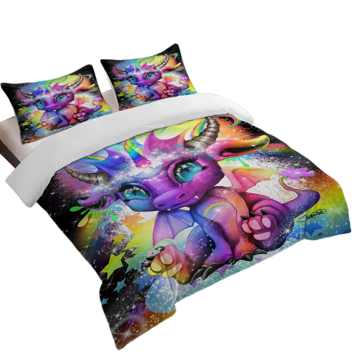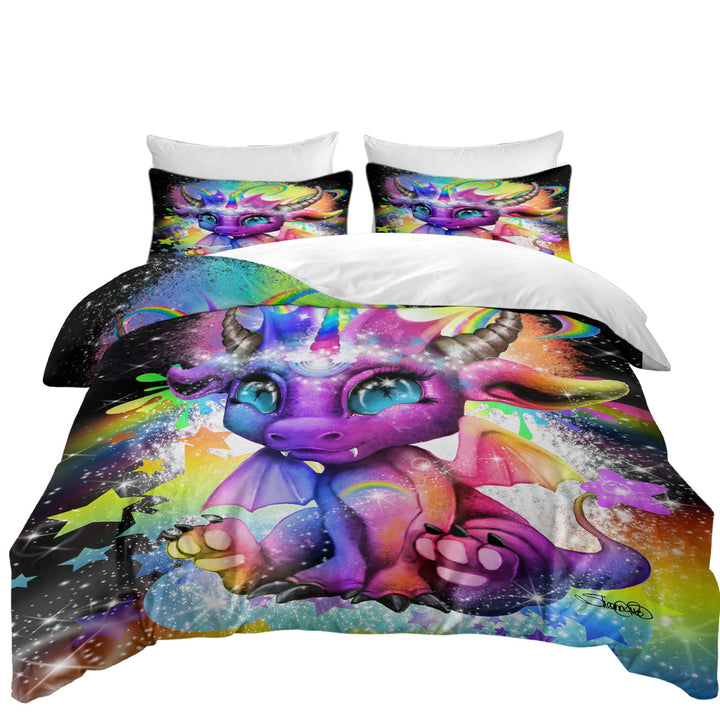 Cute Fantasy Creature Rainbow Lil Dragon Duvet Cover