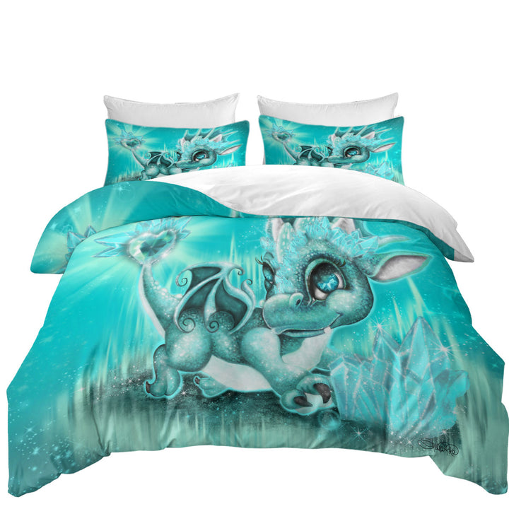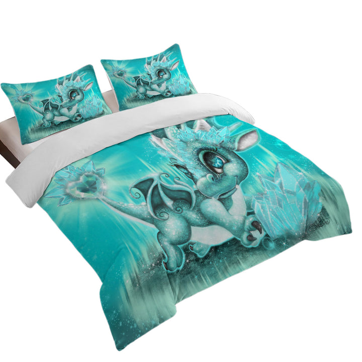 Cute Gift March Aquamarine Birthstone Lil Dragon Duvet Cover