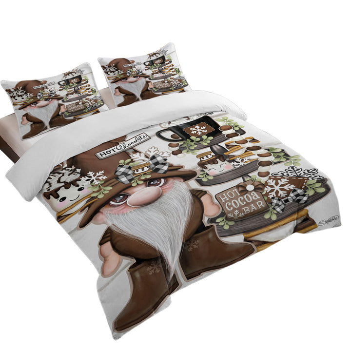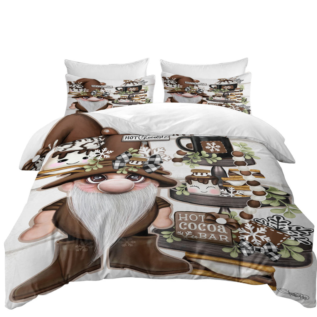 Cute Hot Chocolate and Smores Gnome Duvet Cover