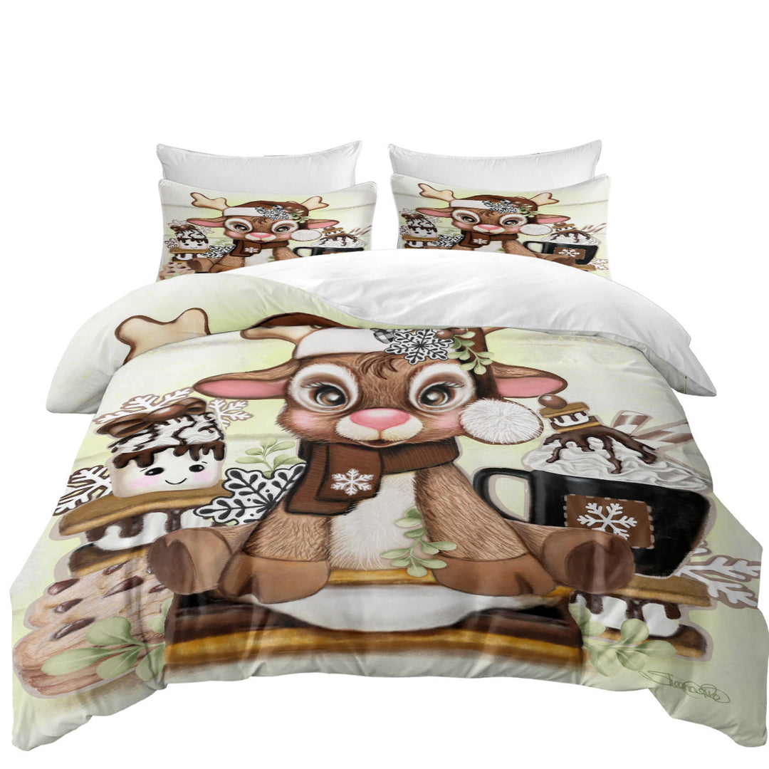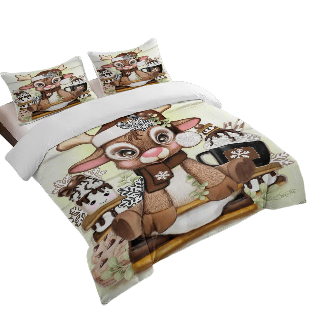 Cute Hot Chocolate and Smores Reindeer Duvet Cover