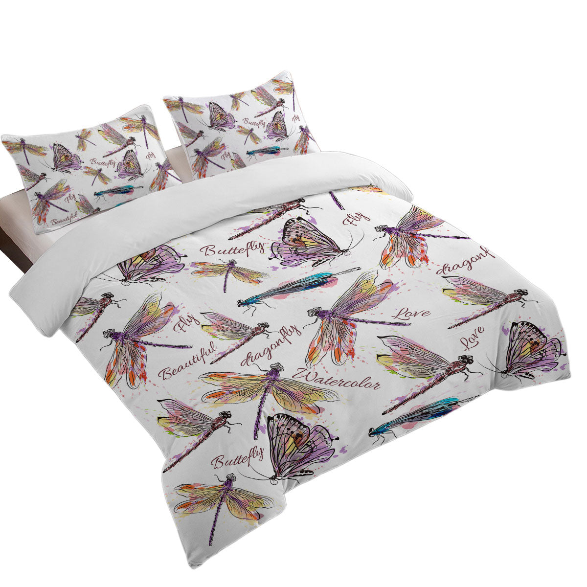 Drawing of Butterflies and Dragonflies Duvet Cover