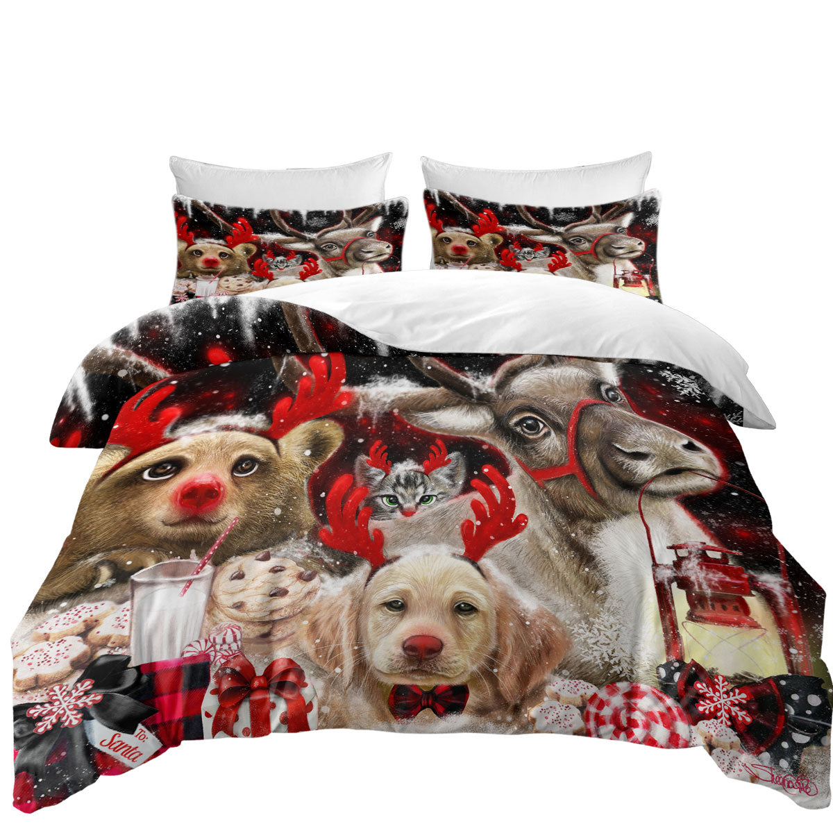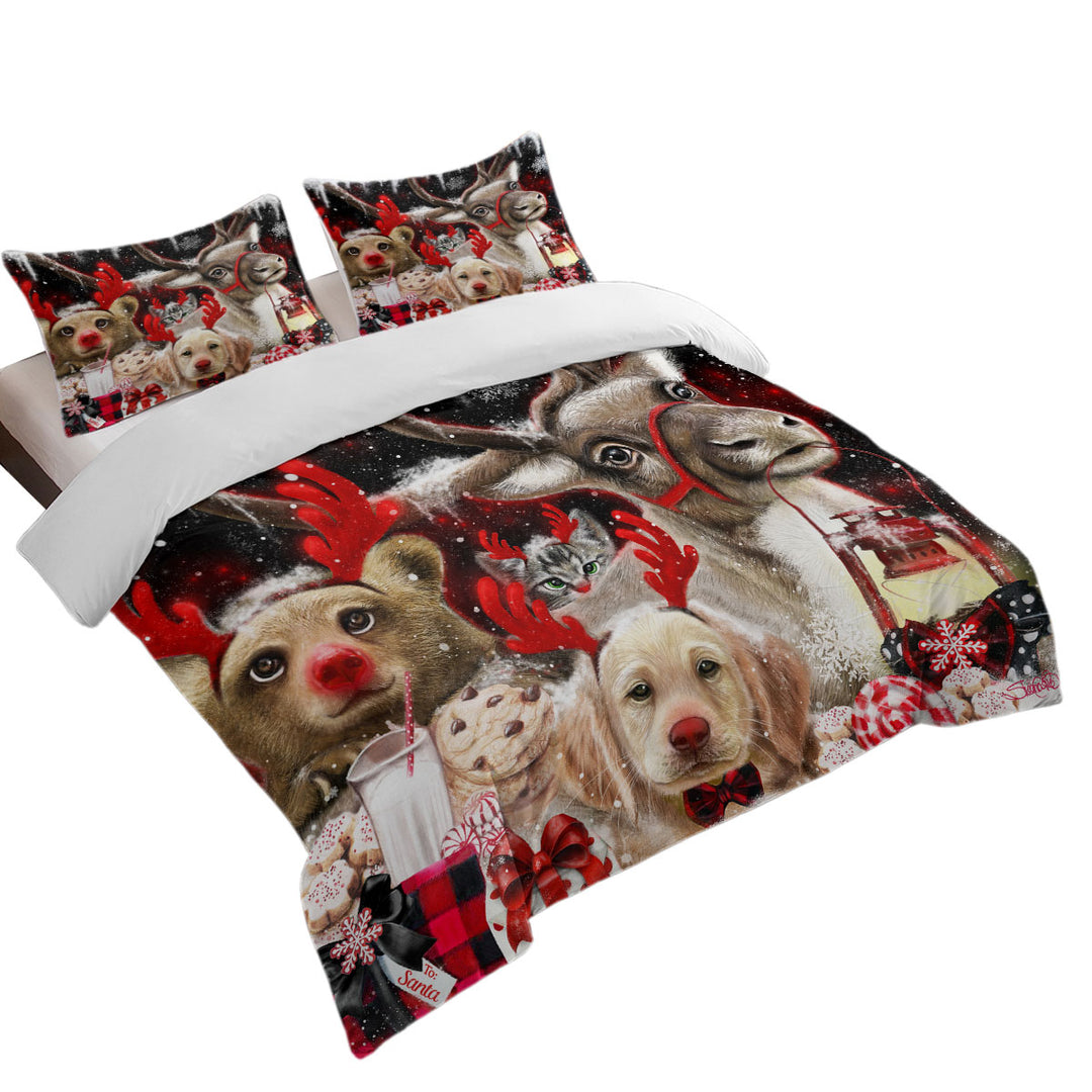 Funny Christmas Santas Reindeer Animals Duvet Cover