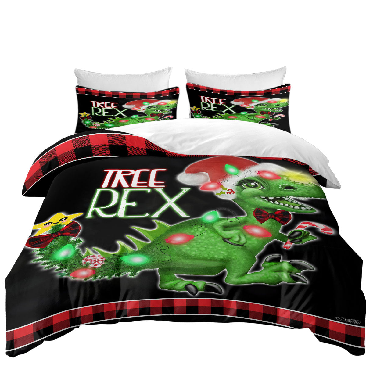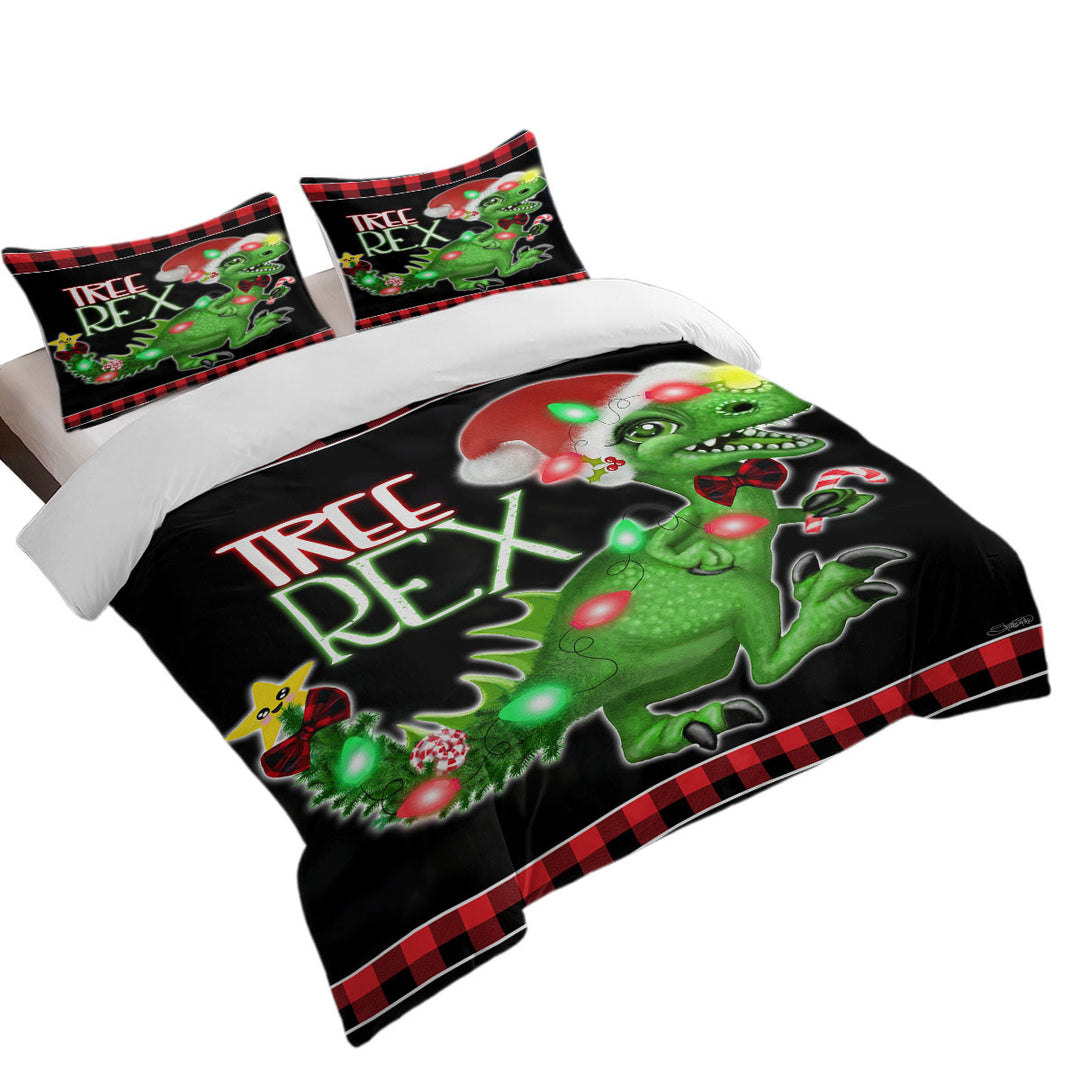Funny Cute Christmas Dinosaur Tree Rex Duvet Cover