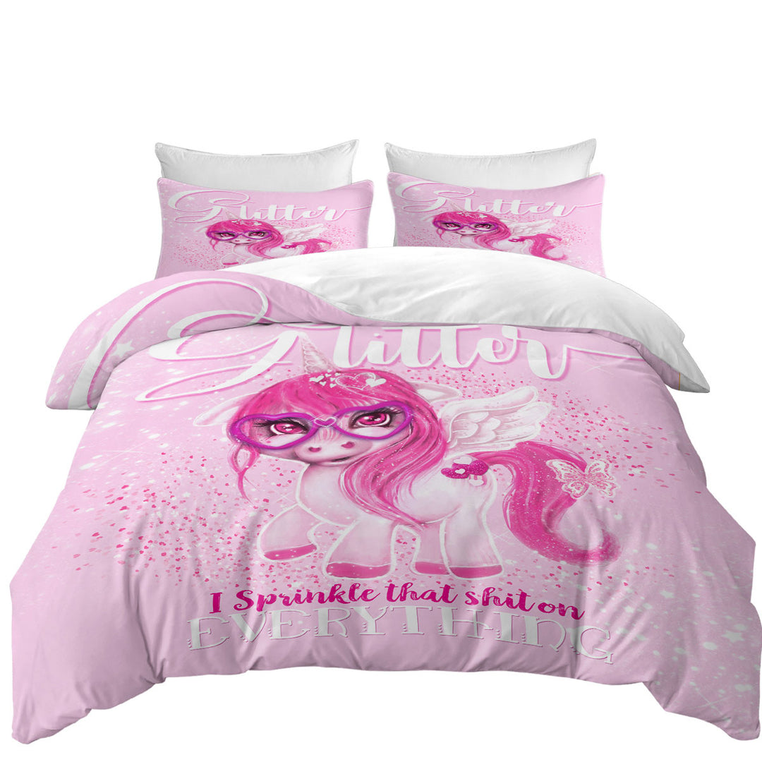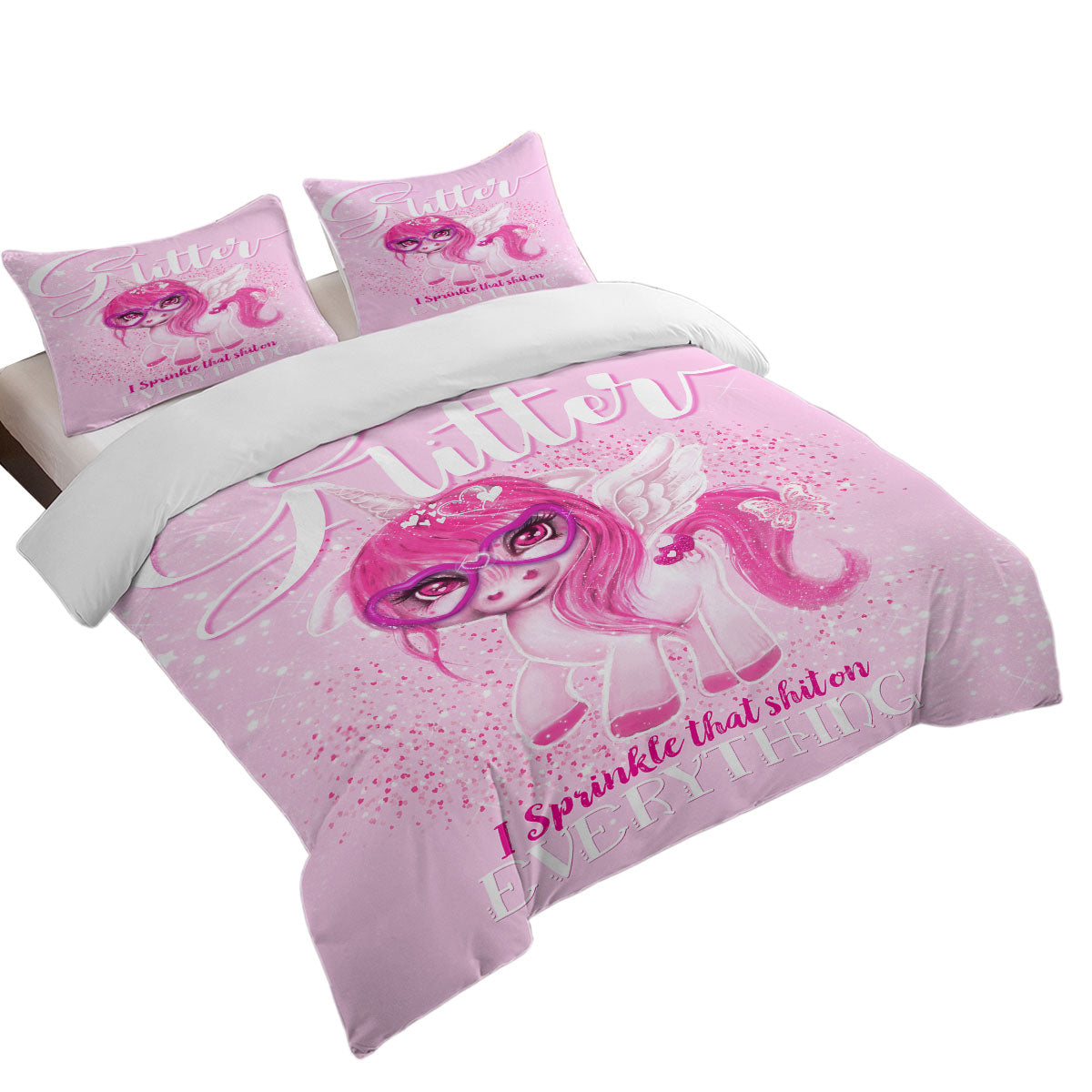 Funny Girly Glitter Everything Unicorn Duvet Cover