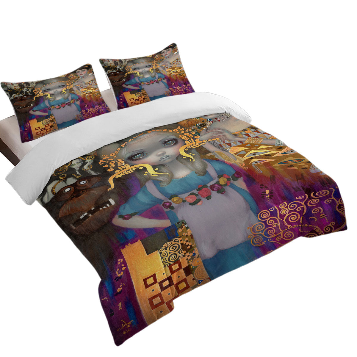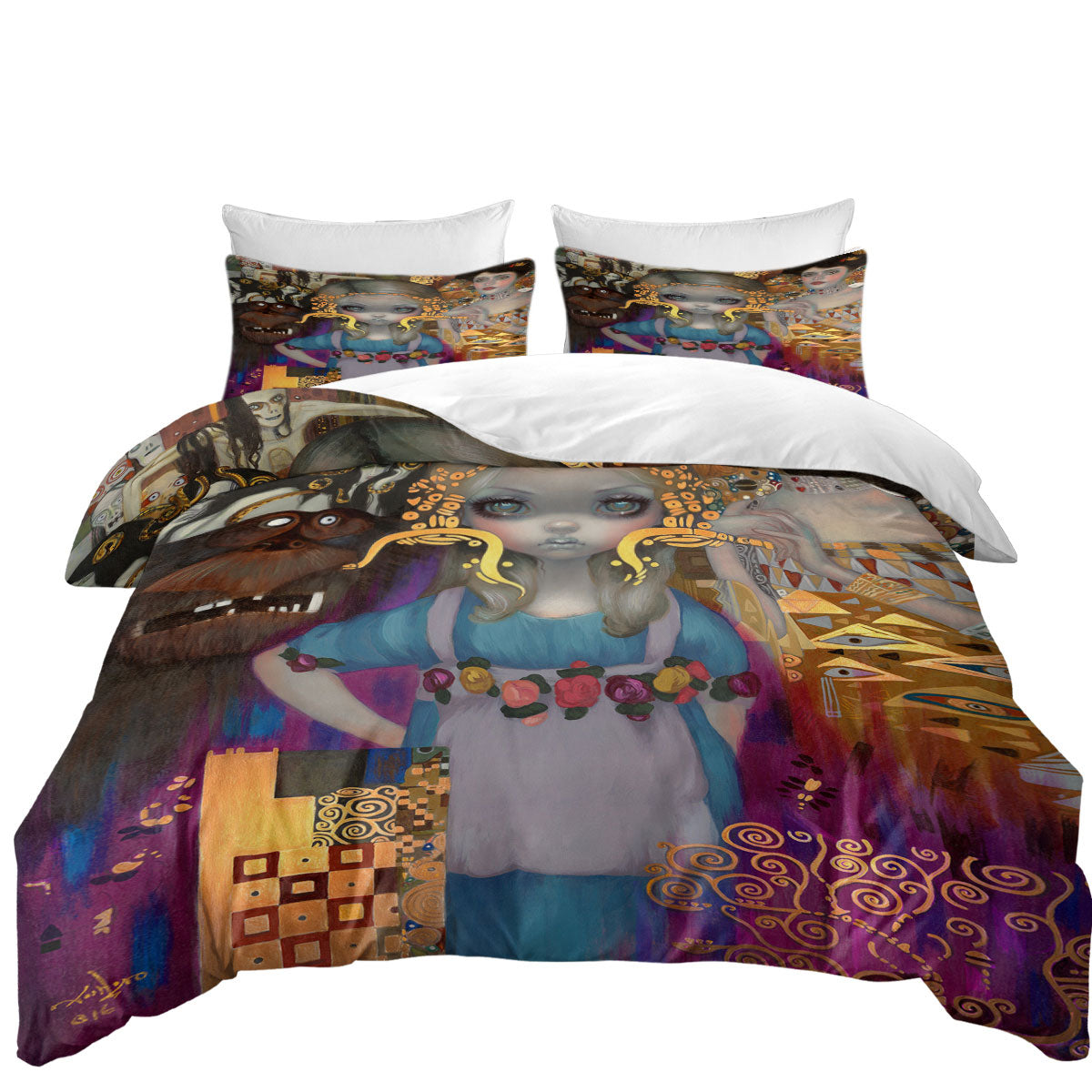 King Duvet Cover set with Painted Fantasy Art Alice in a Klimt Dream