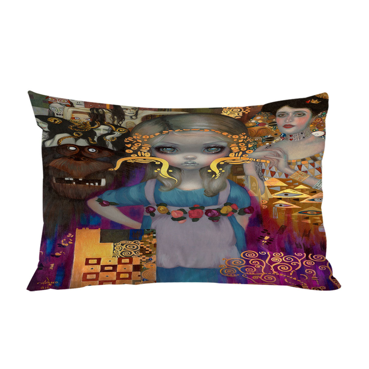 Pillow Case Covers with Painted Fantasy Art Alice in a Klimt Dream