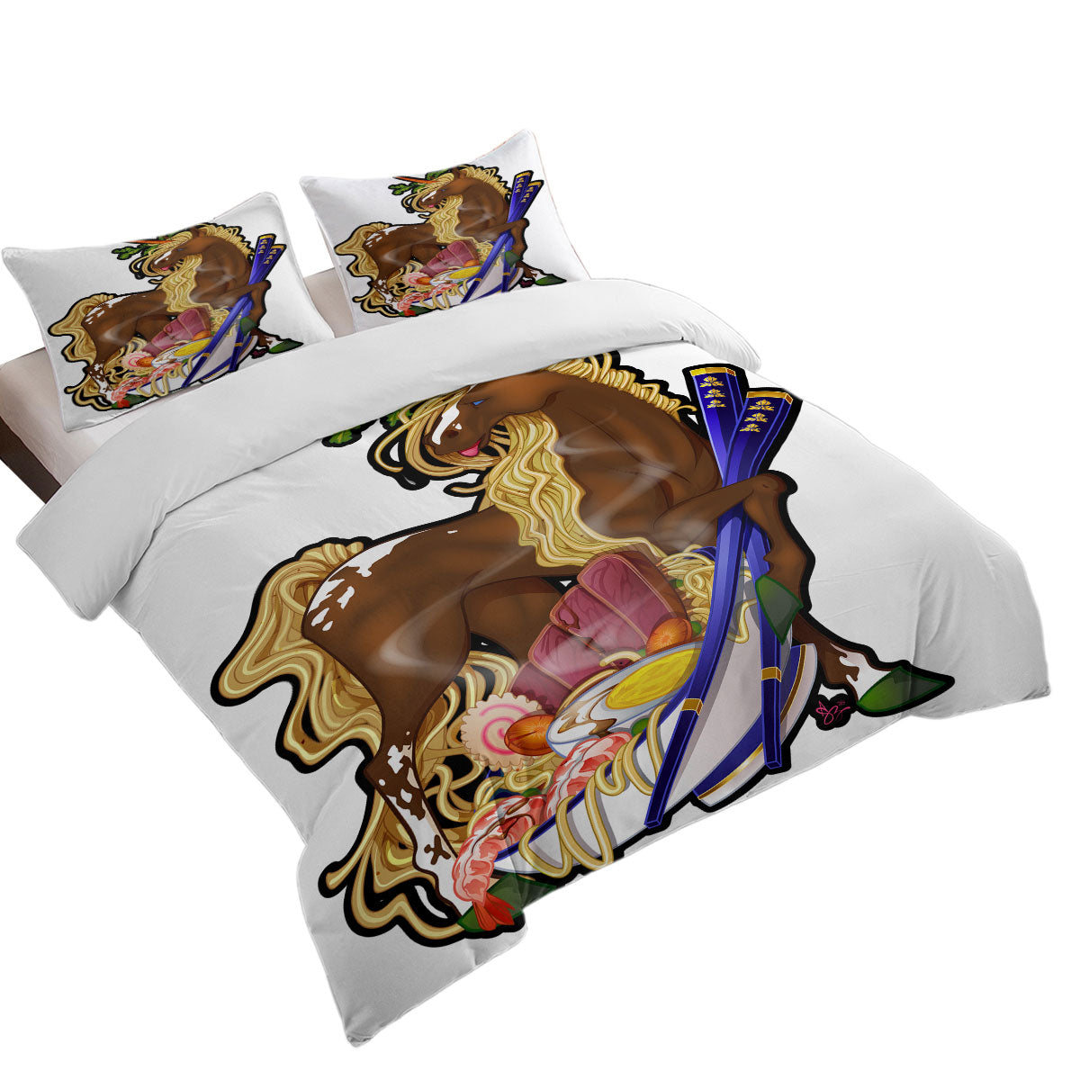 Ramen Noodles Chopsticks Funny Unicorn Duvet Cover