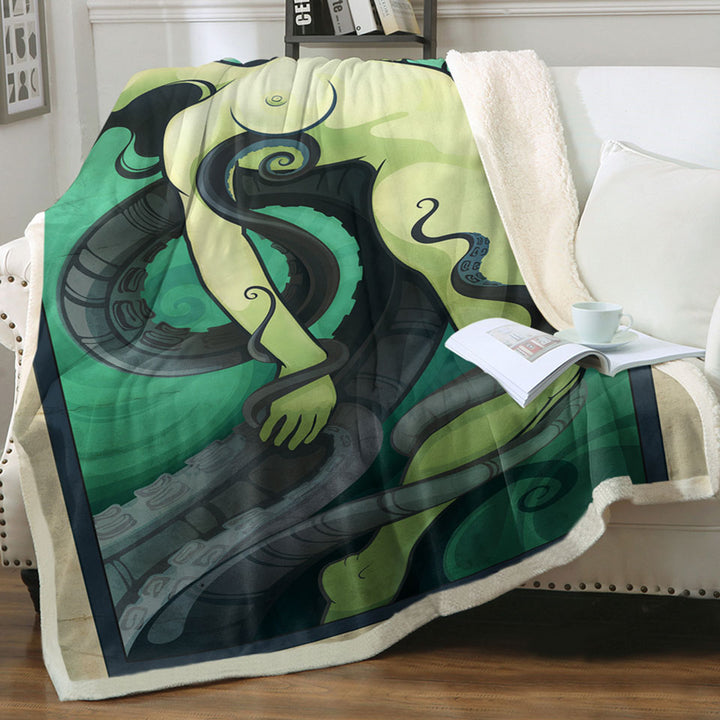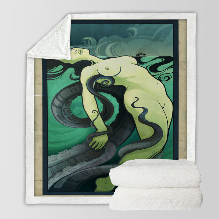 Cool Art Octopus vs Sexy Woman Throw Blanket