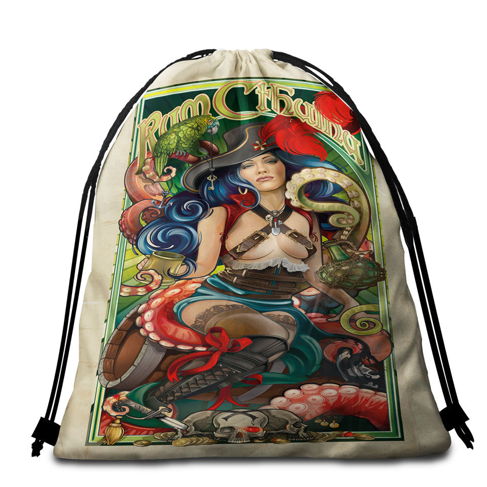 Rum Cthulhu and Pretty Girl Pirate Cool Art Round Beach Towel