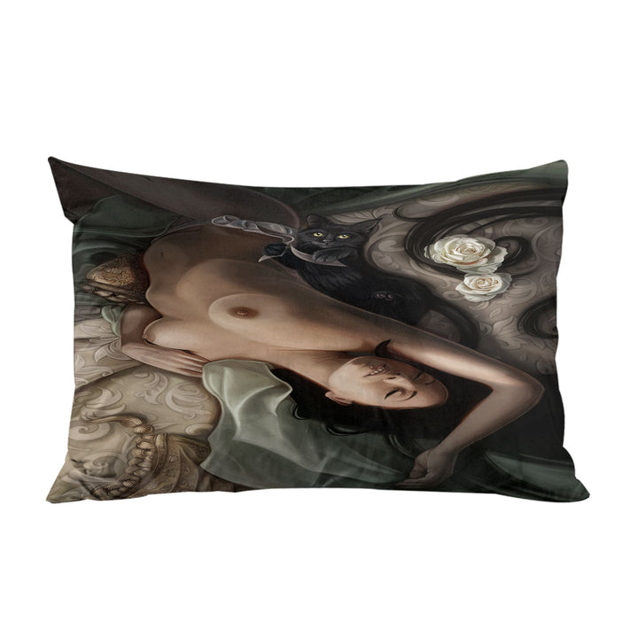 Sexy Art Black Cat and Sleeping Beautiful Woman Duvet Cover