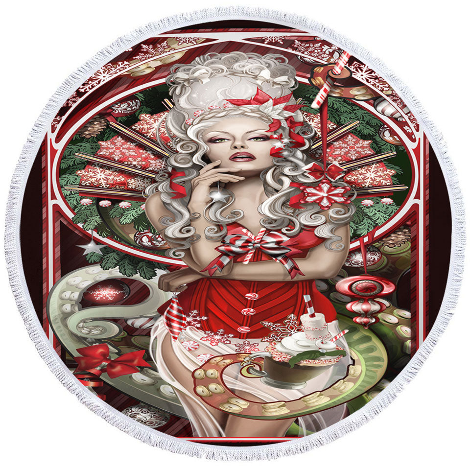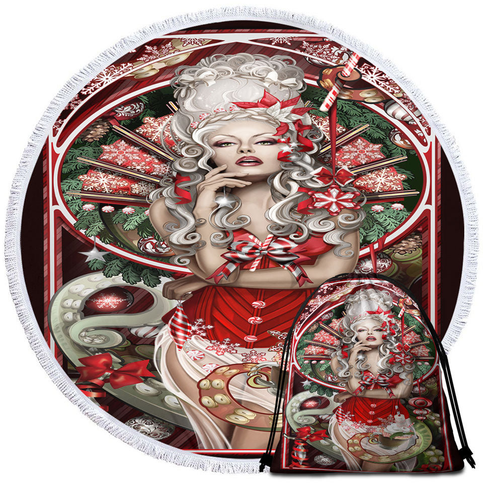 Sexy Art Cthulhu and Beautiful Candy Lady Round Beach Towel