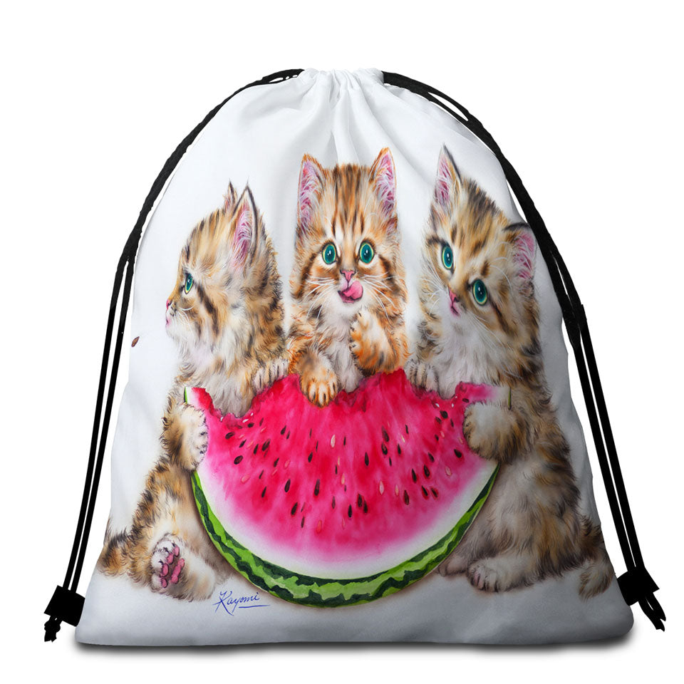 Adorable Funny Kittens Watermelon Summer Treat Round Beach Towel