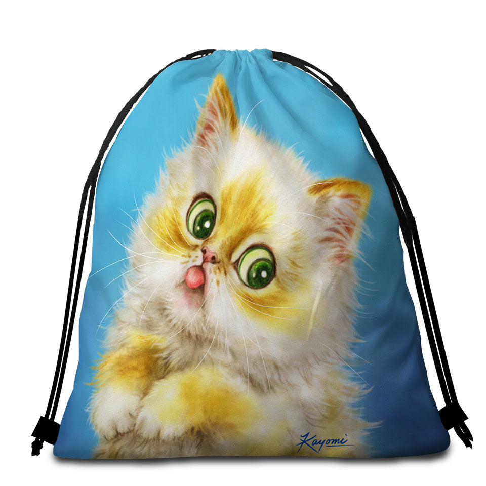 Cats Cute and Funny Art Painting Furry Kitty Cat Round Beach Towel