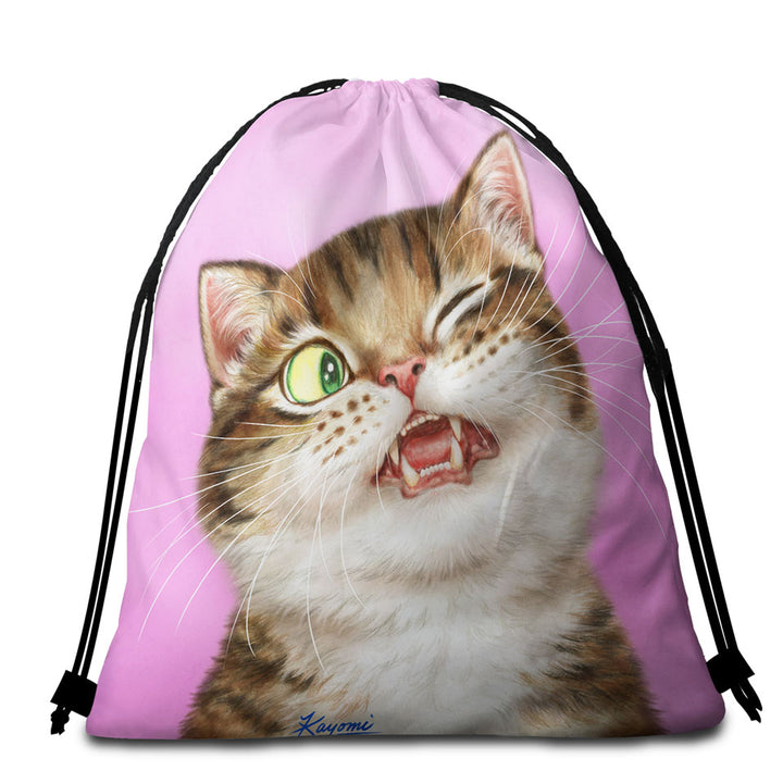 Cats Funny Faces Drawings Adorable Tabby Kitty Round Beach Towel