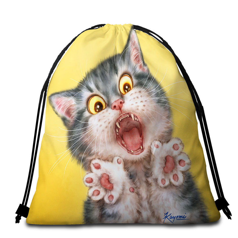 Funny Painted Cats Screaming Grey Kitten Round Beach Towel