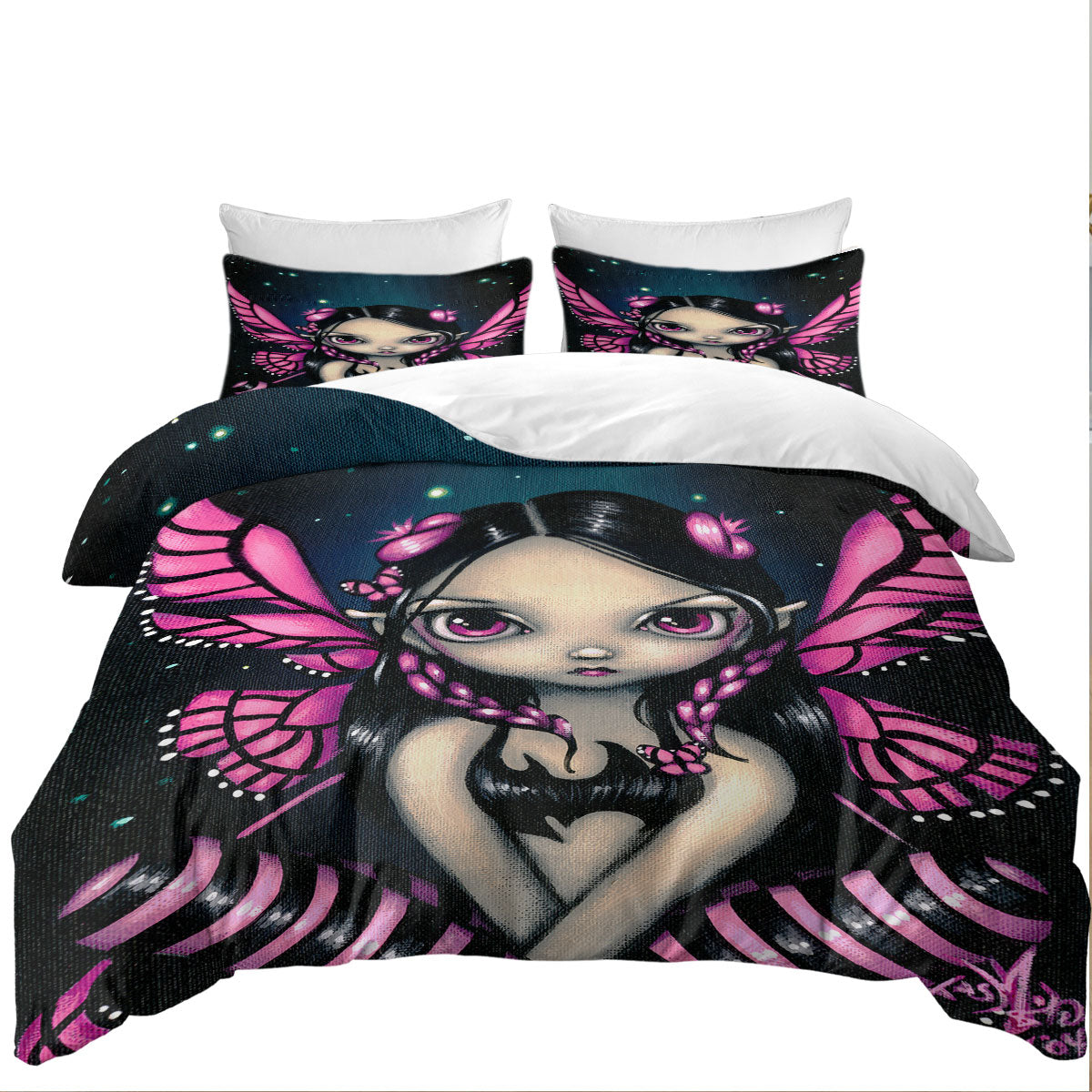 Girls Painting Pink Butterfly Fairy Duvet Cover