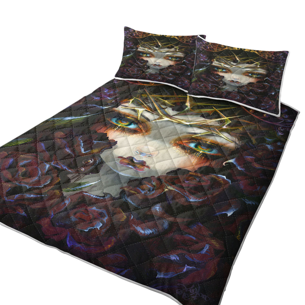Gothic Art the Language of Flowers Black Roses Girl Quilt