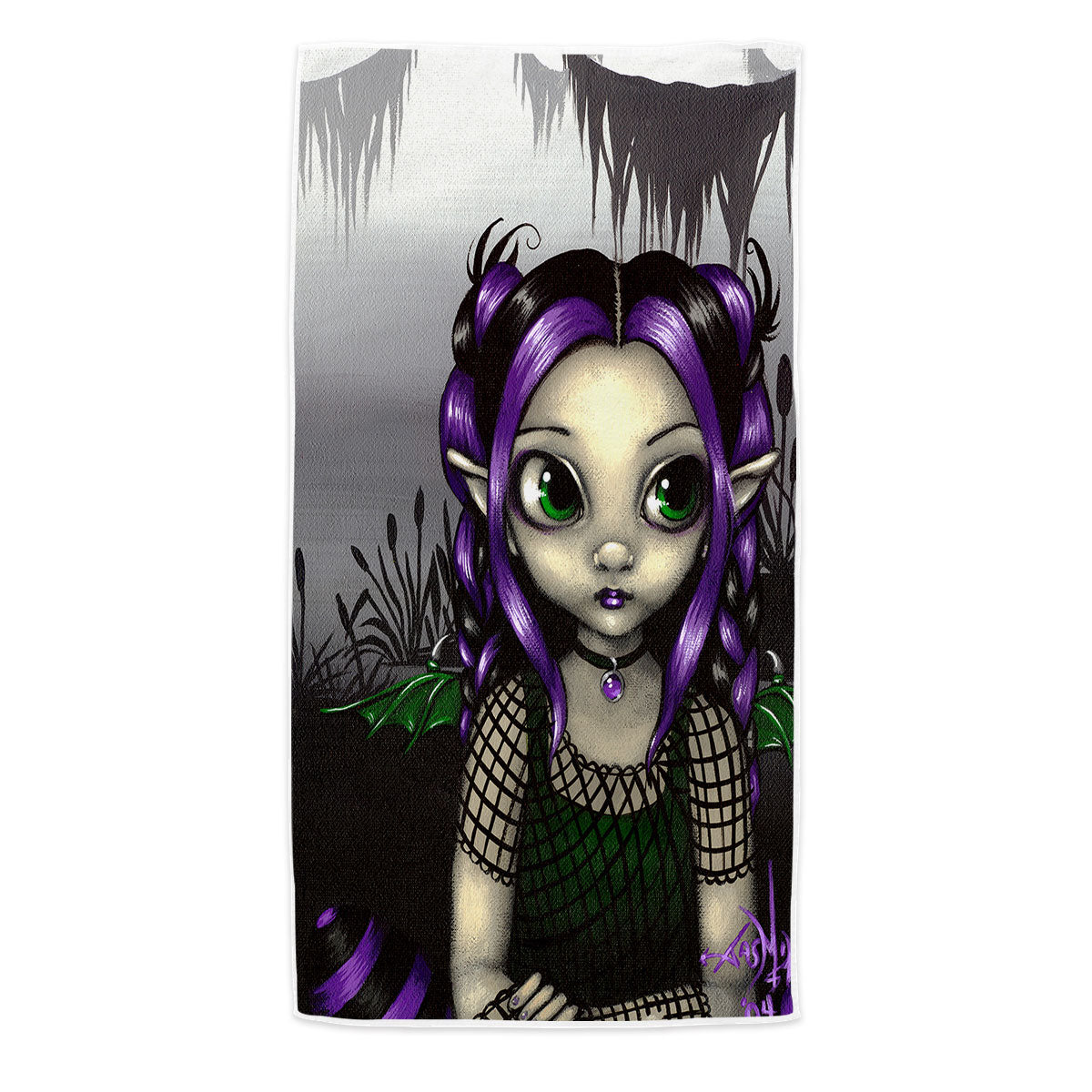 Gothling Cute Purple Goth Elf Girl in Eerie Swamp Microfiber Beach Towel