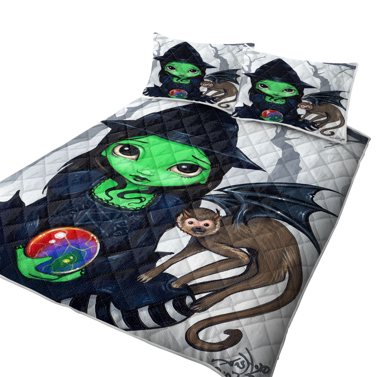 Halloween Theme Wicked Witch and Her Flying Monkey Quilt