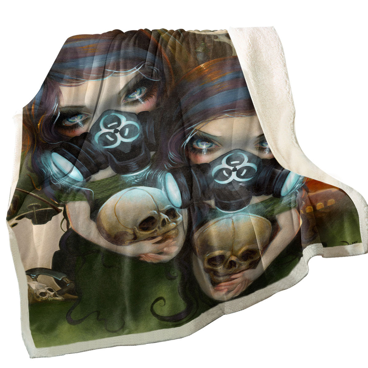 Hazardous Beauties Post Apocalyptic Art Girls Throw Blanket
