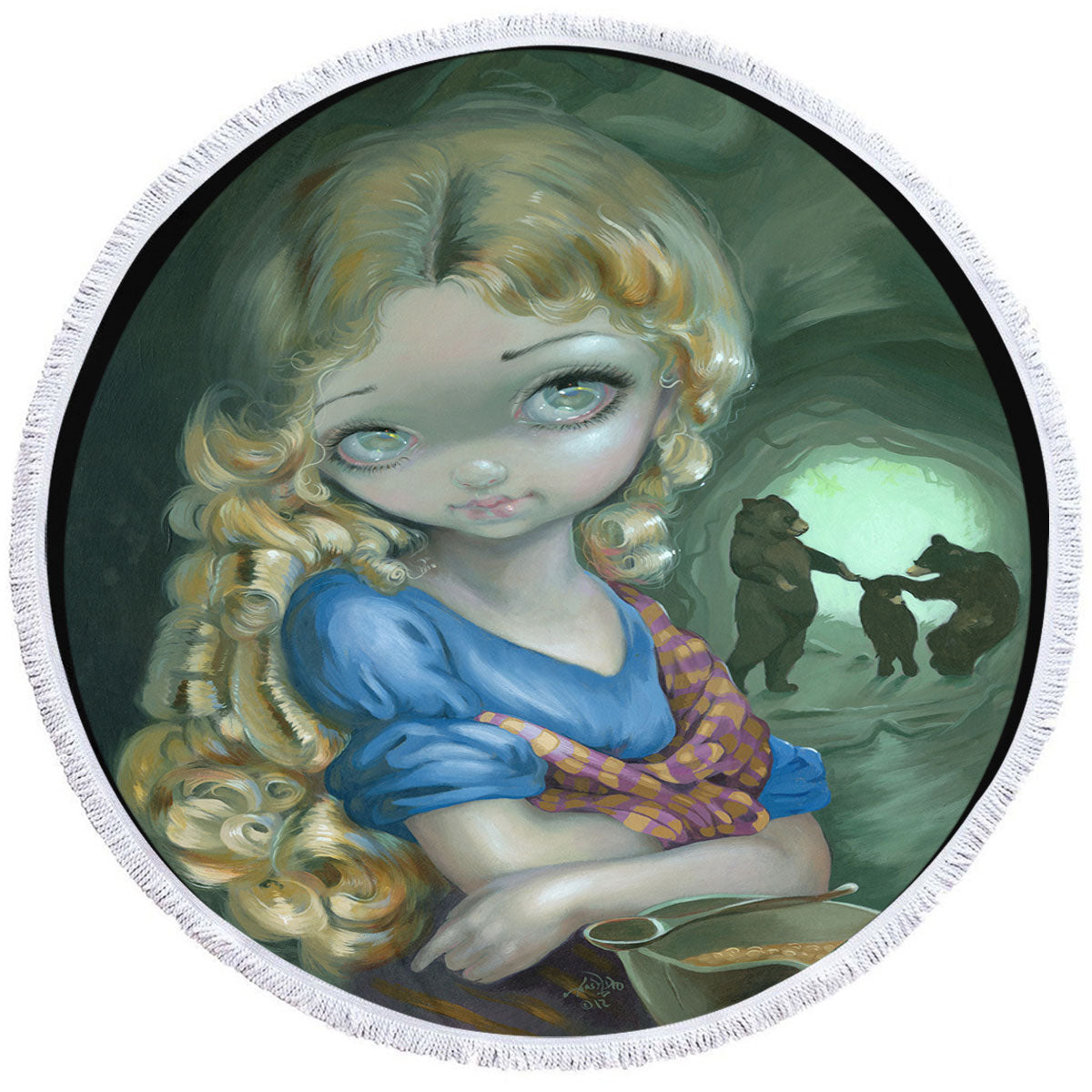 Kids Fairytale Art Portrait of Goldilocks Round Beach Towel