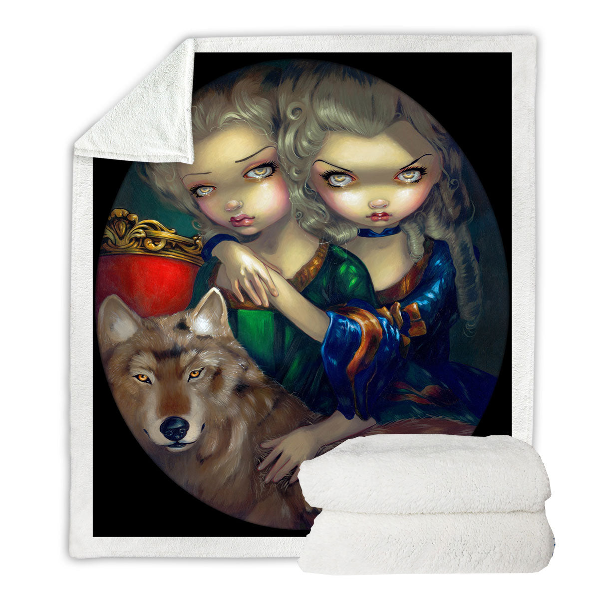 Art Sherpa Blanket Loup Garou Beautiful Girls Twins and Their Wolf