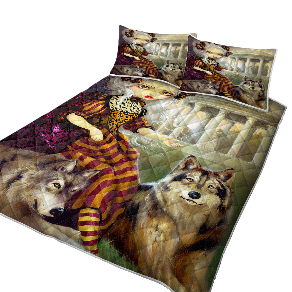Loup Garou the Temple Beautiful Maiden and Wolves Quilt