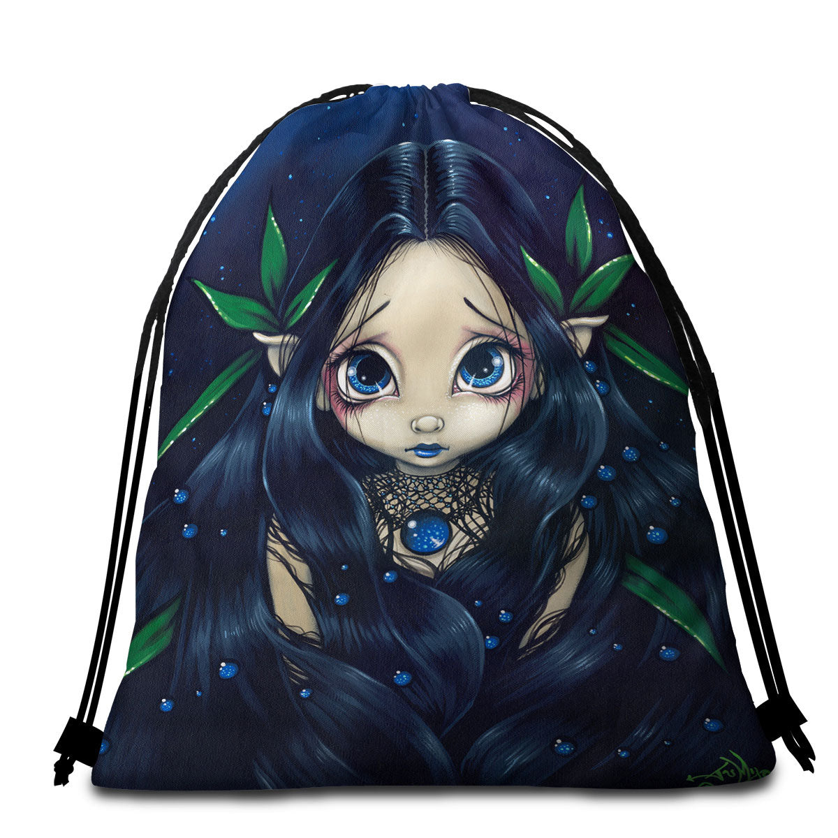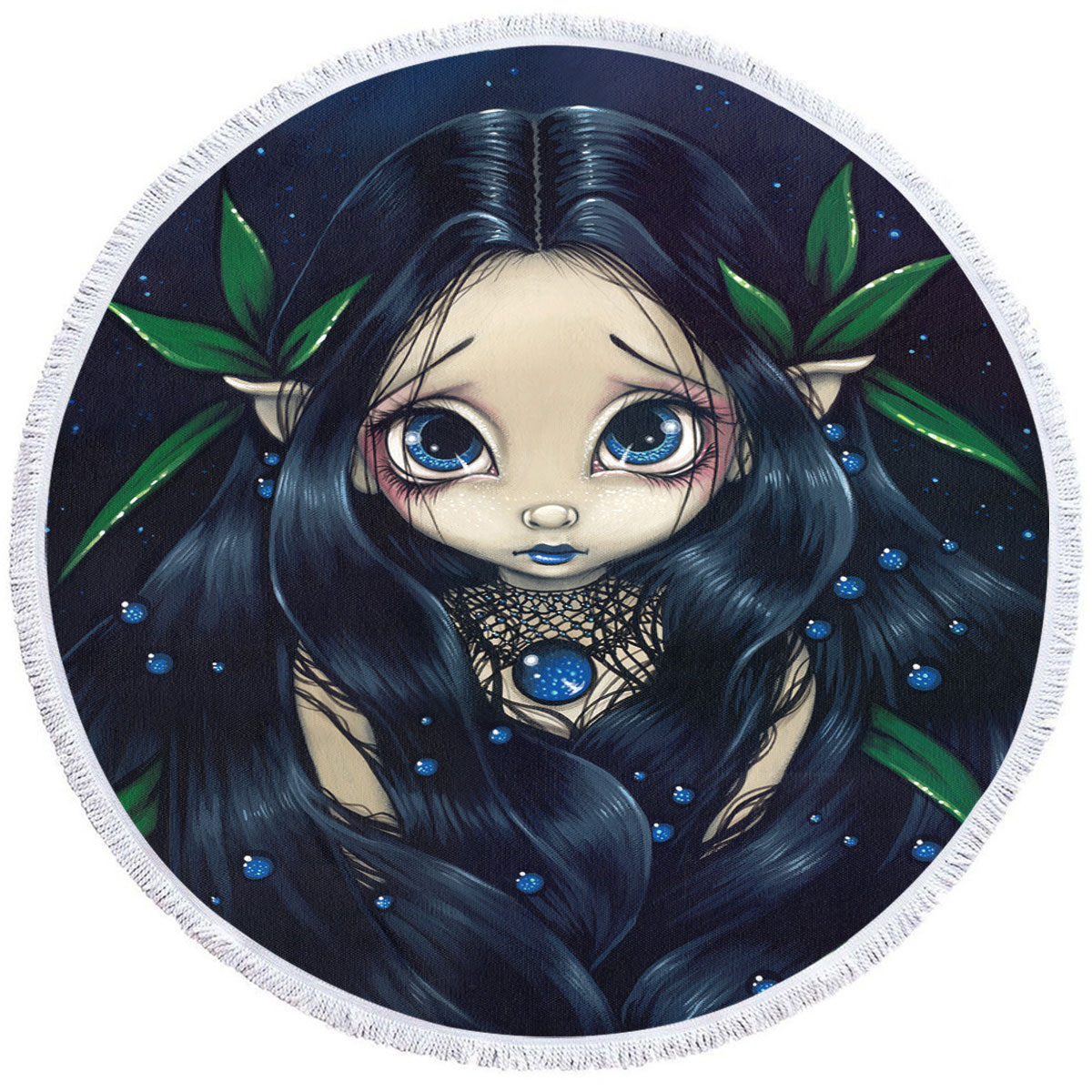Lovely is the Night Dark Raven Hair Elf Fairy Round Beach Towel