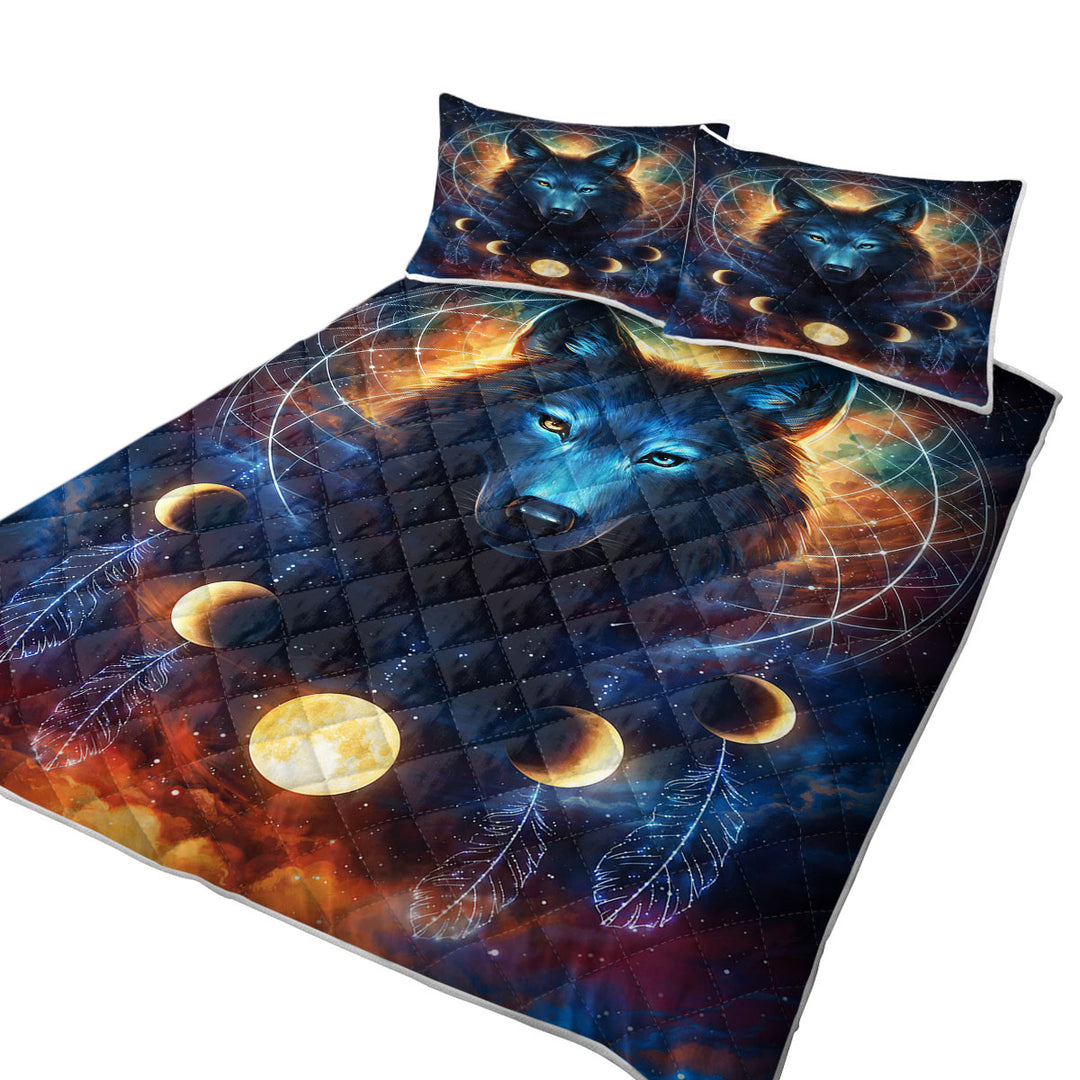 Dreamcatcher Space Moon Wolf Quilt