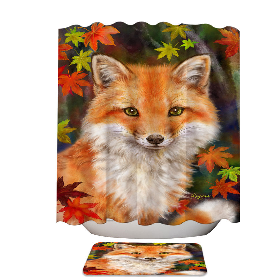 Animal Paintings Fox with Autumn Leaves Shower Curtain