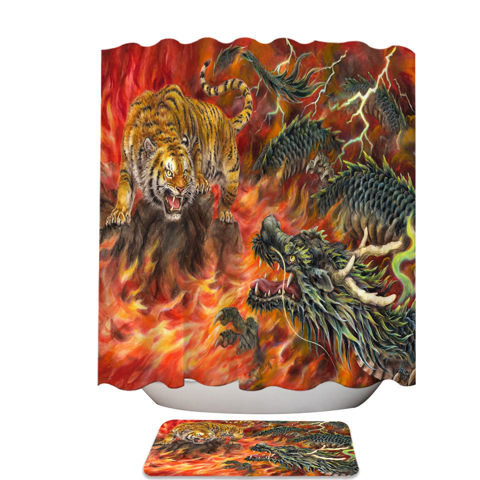 Cool Fantasy Art Dragon vs Tiger in Fire Shower Curtain