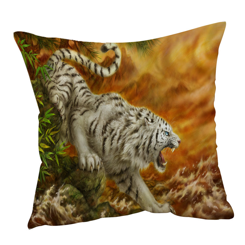 Cool Wildlife Drawing Ocean White Tiger Throw Pillow