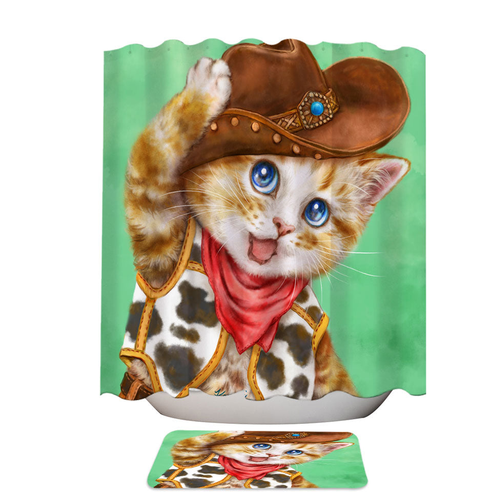 Funny Kittens Cute Cowboy Ginger Cat Shower Curtain