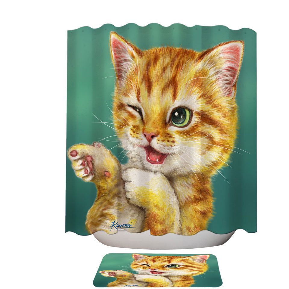 Gotcha Winking Cool Cat Ginger Kitten Shower Curtain