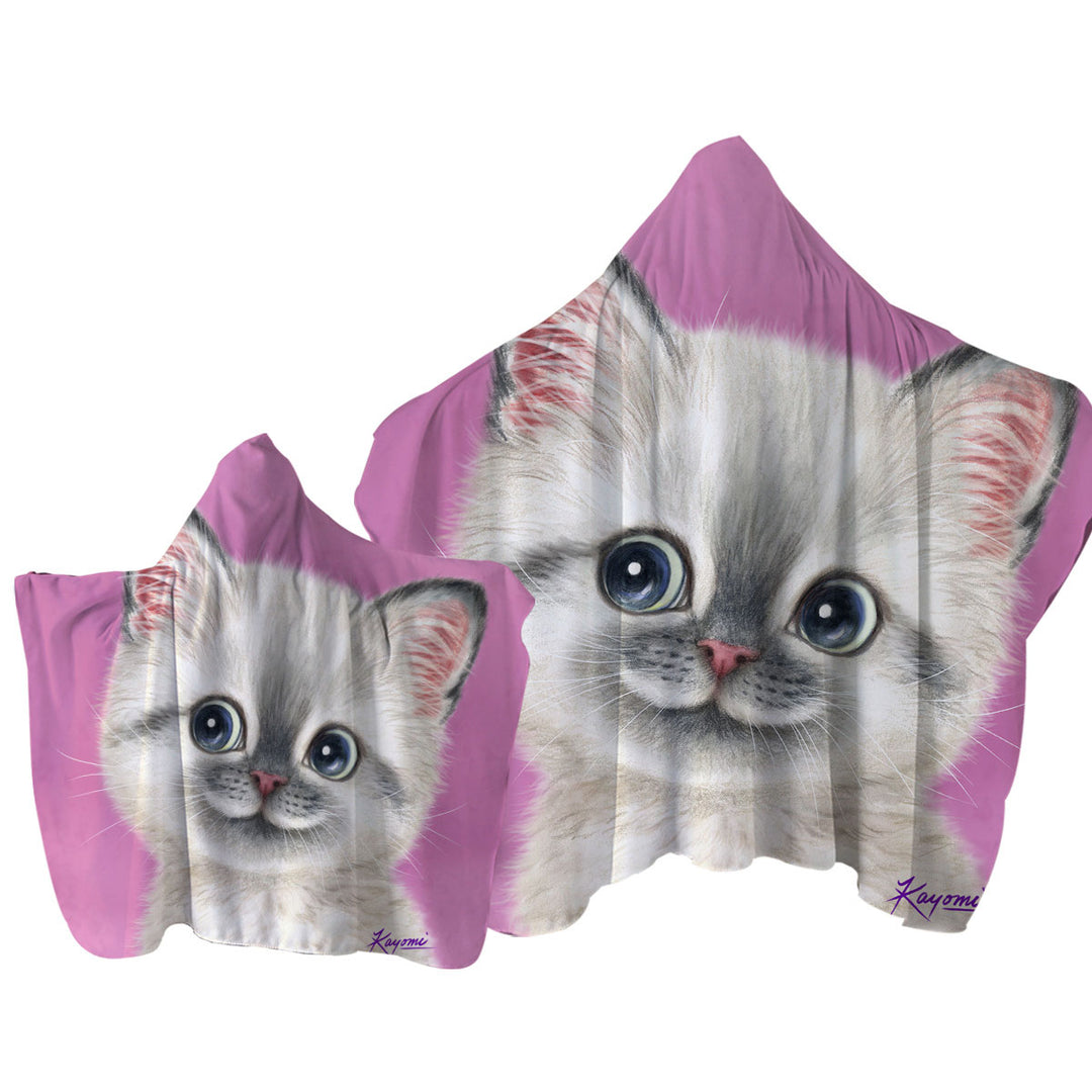 Greyish Kitty Cat over Pink for Girls Towel with Hood