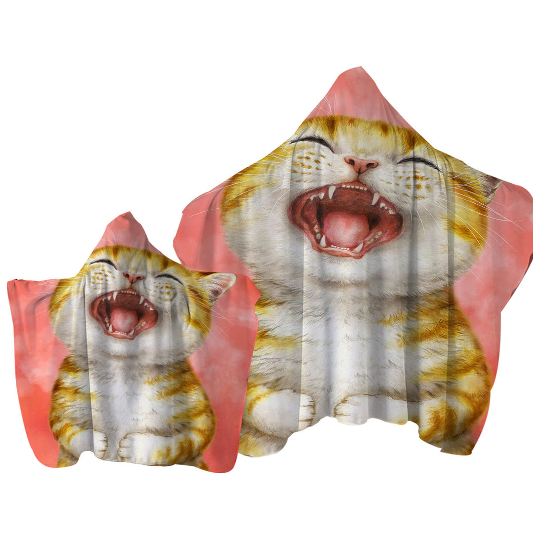 Happy Kitten Laughing Cute Ginger Cat Towel with Hood