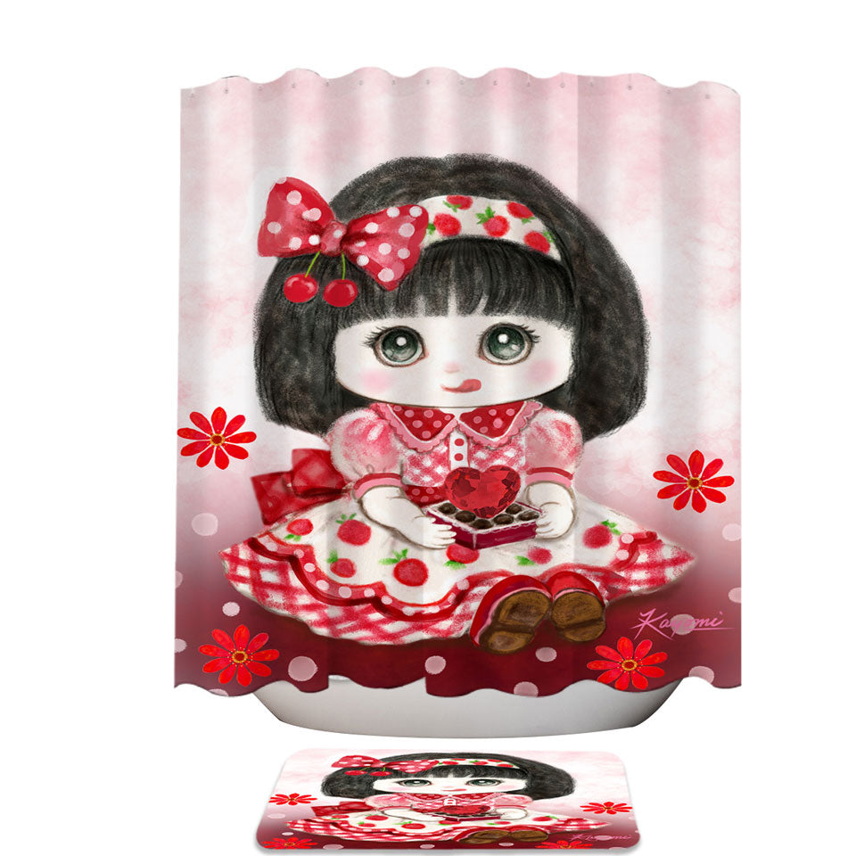 Kids Drawings Red Girl Heart and Flowers Shower Curtain