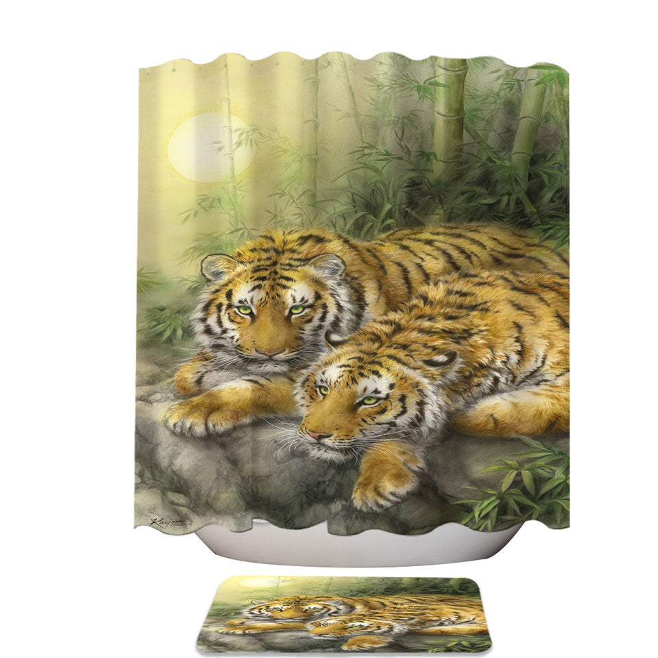 Wild Animals Art Tigers Forest Morning Shower Curtain