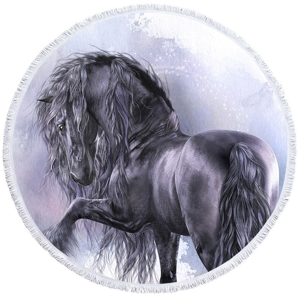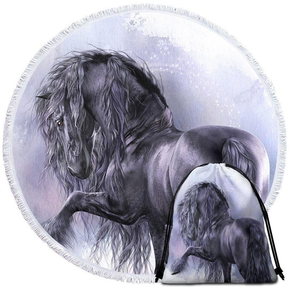 Honorable Horse the Black Pearl Horses Art Round Beach Towel