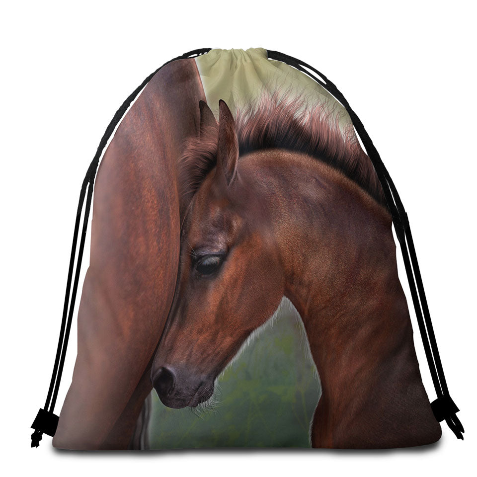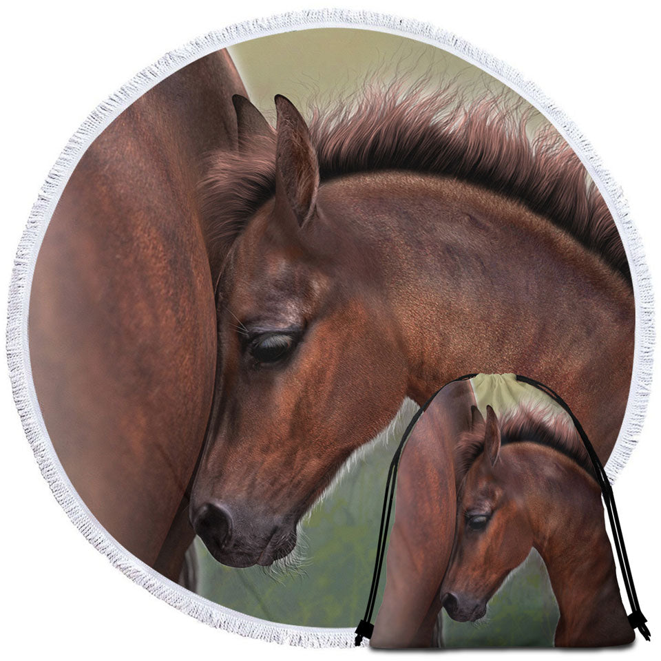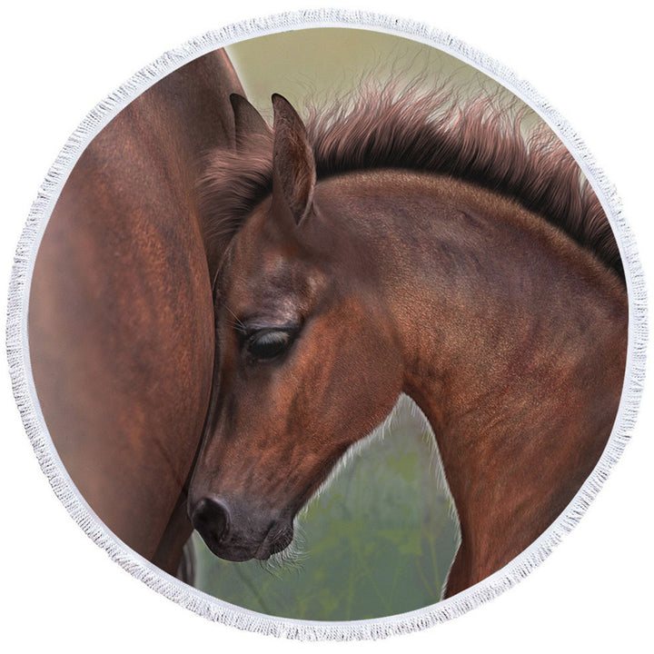 Horse Art Cute Momma with Foal Round Beach Towel