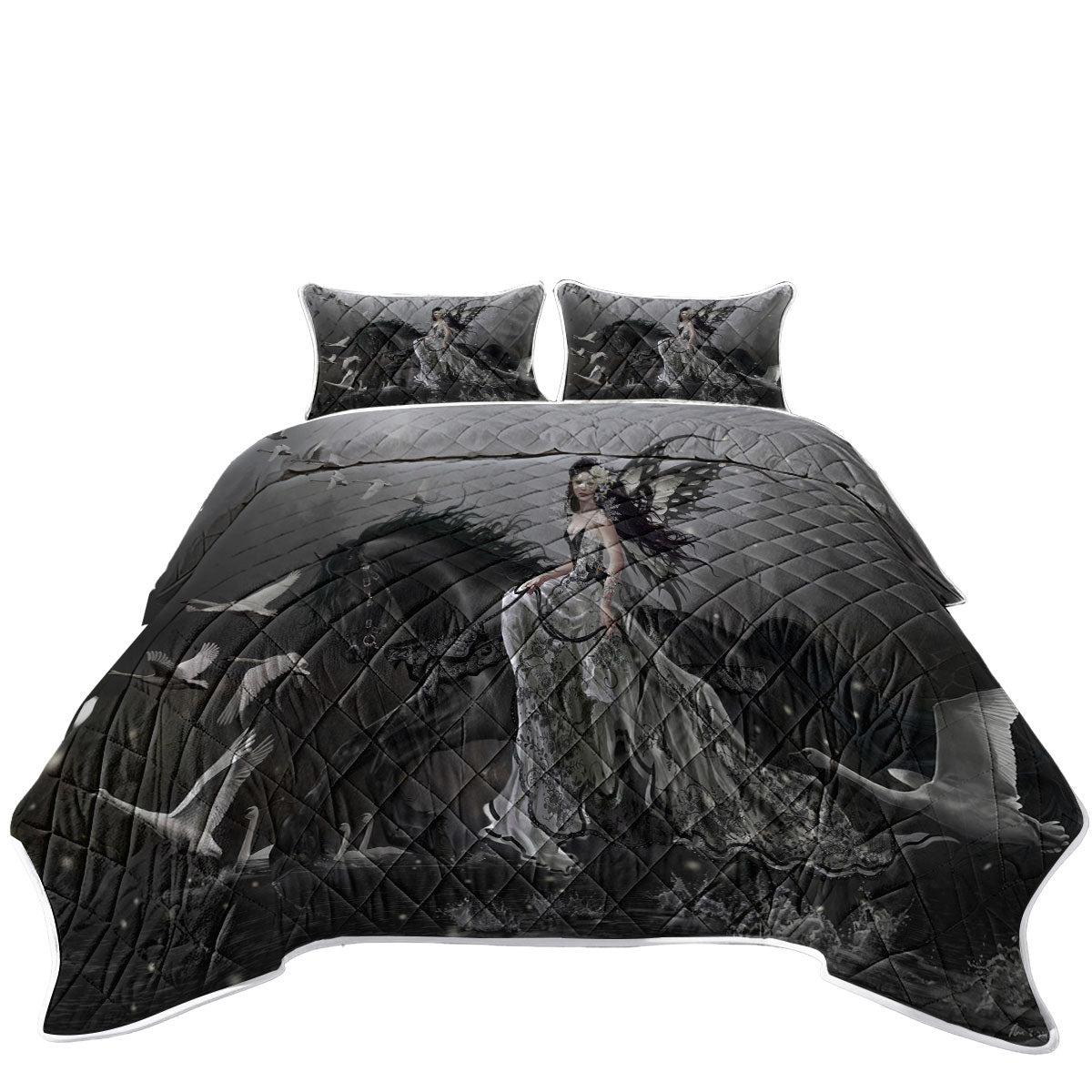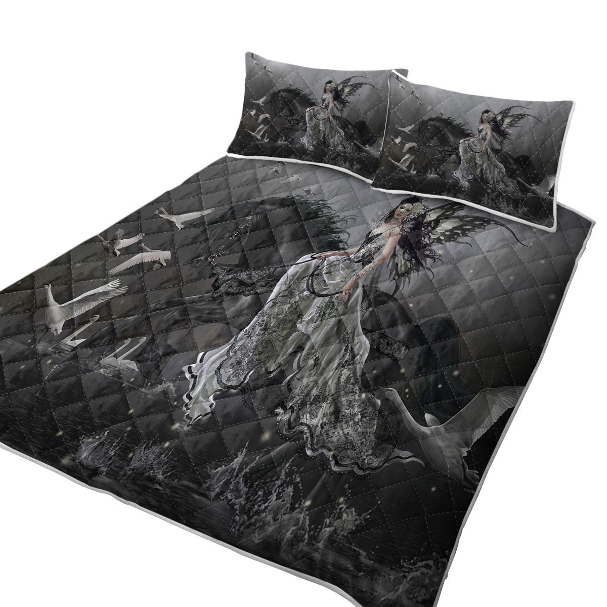 Black Horse Fairy Lamentation of Swans Fantasy Art Quilt