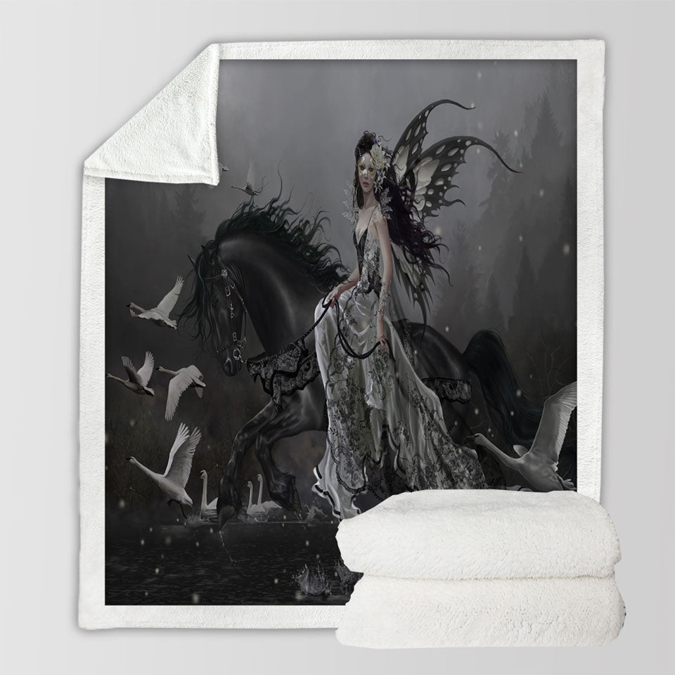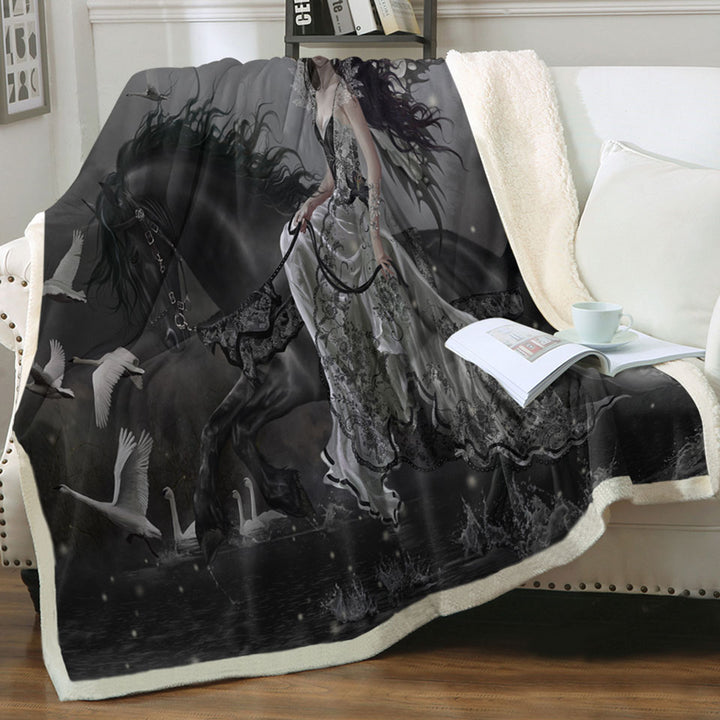 Black Horse Fairy Lamentation of Swans Fantasy Art Throw Blanket