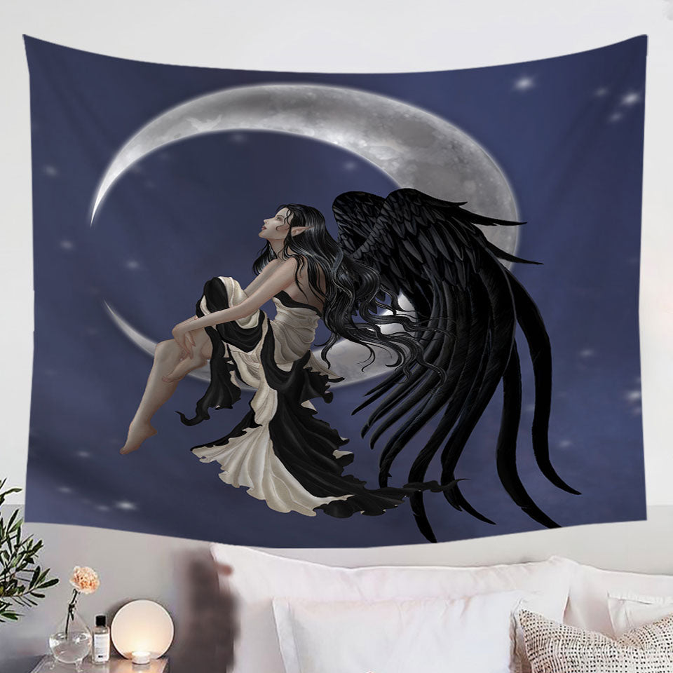 Dark Night Elf Fairy Stargazer on the Moon Tapestry
