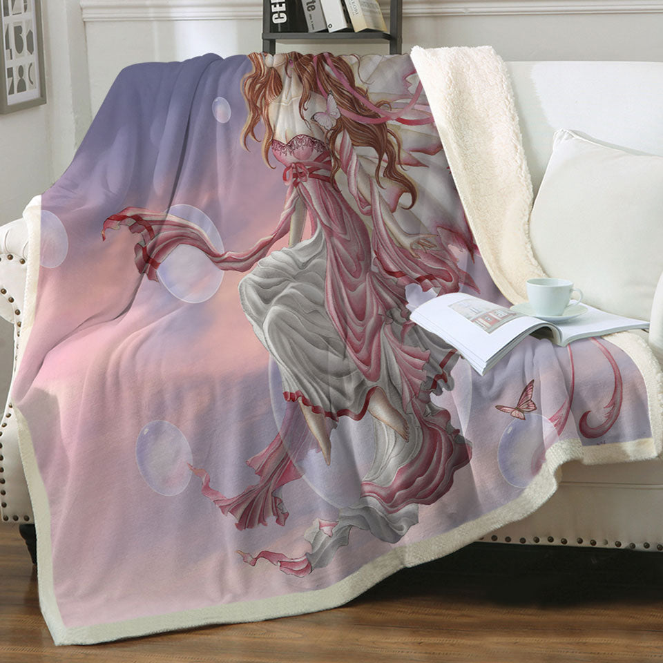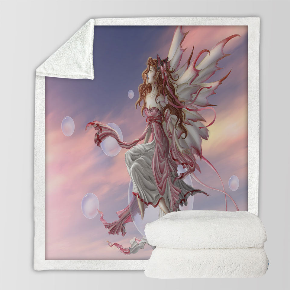 Day Break Fantasy Artwork Sunset Sky Fairy Throw Blanket