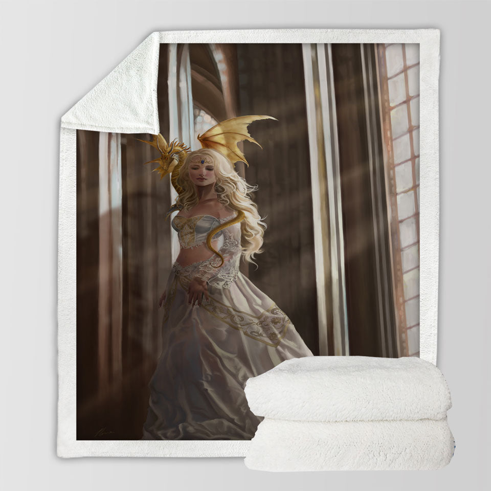 Fantasy Art Asiria Beautiful Dragon Princess Throw Blanket