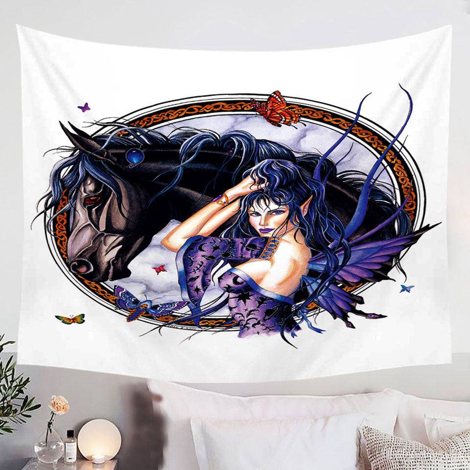 Fantasy Art Black Horse and Purple Fairy Tapestry