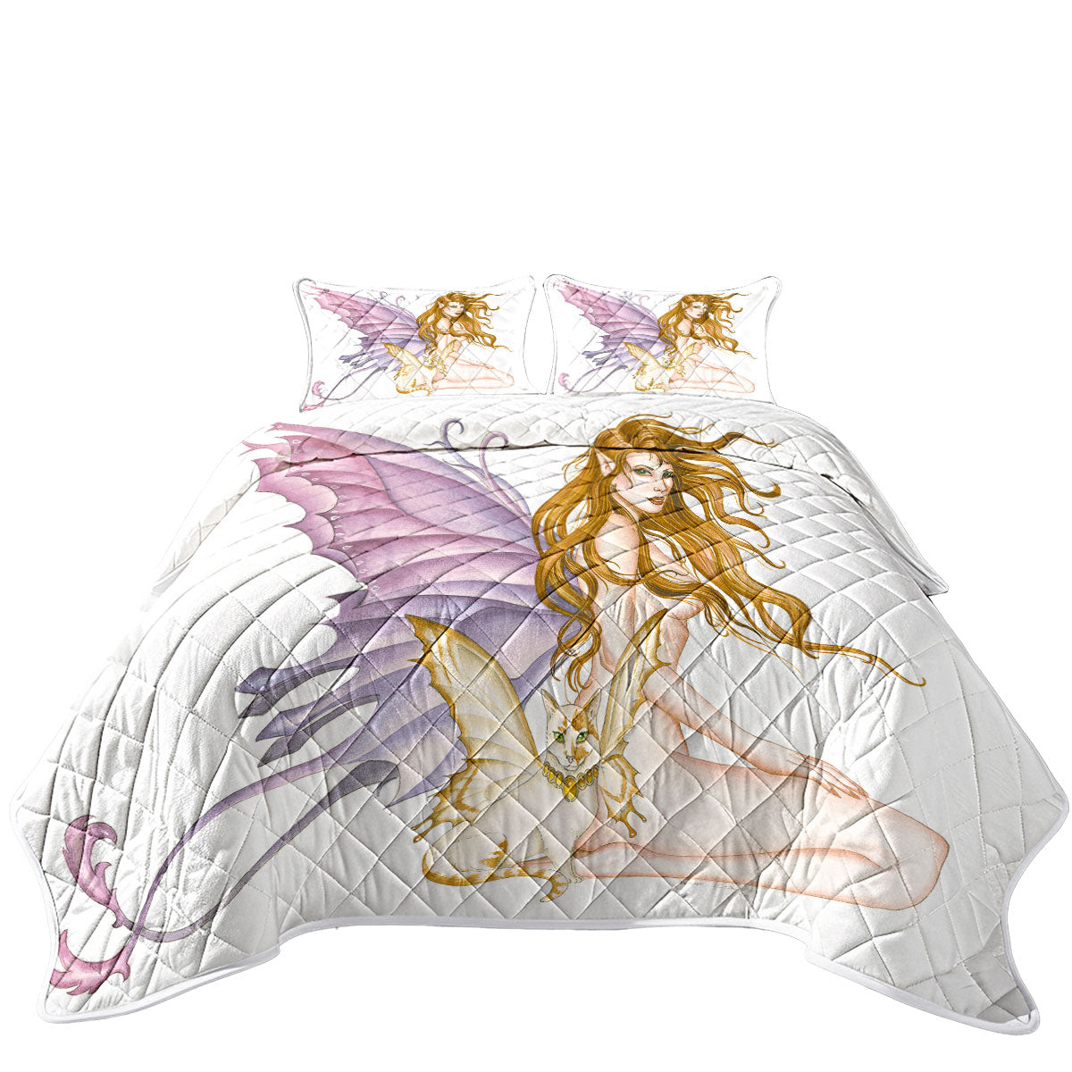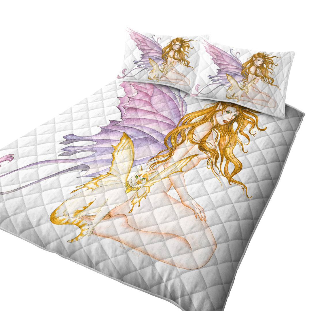 Fantasy Art Fairy Cat and Amber the Sexy Fairy Quilt