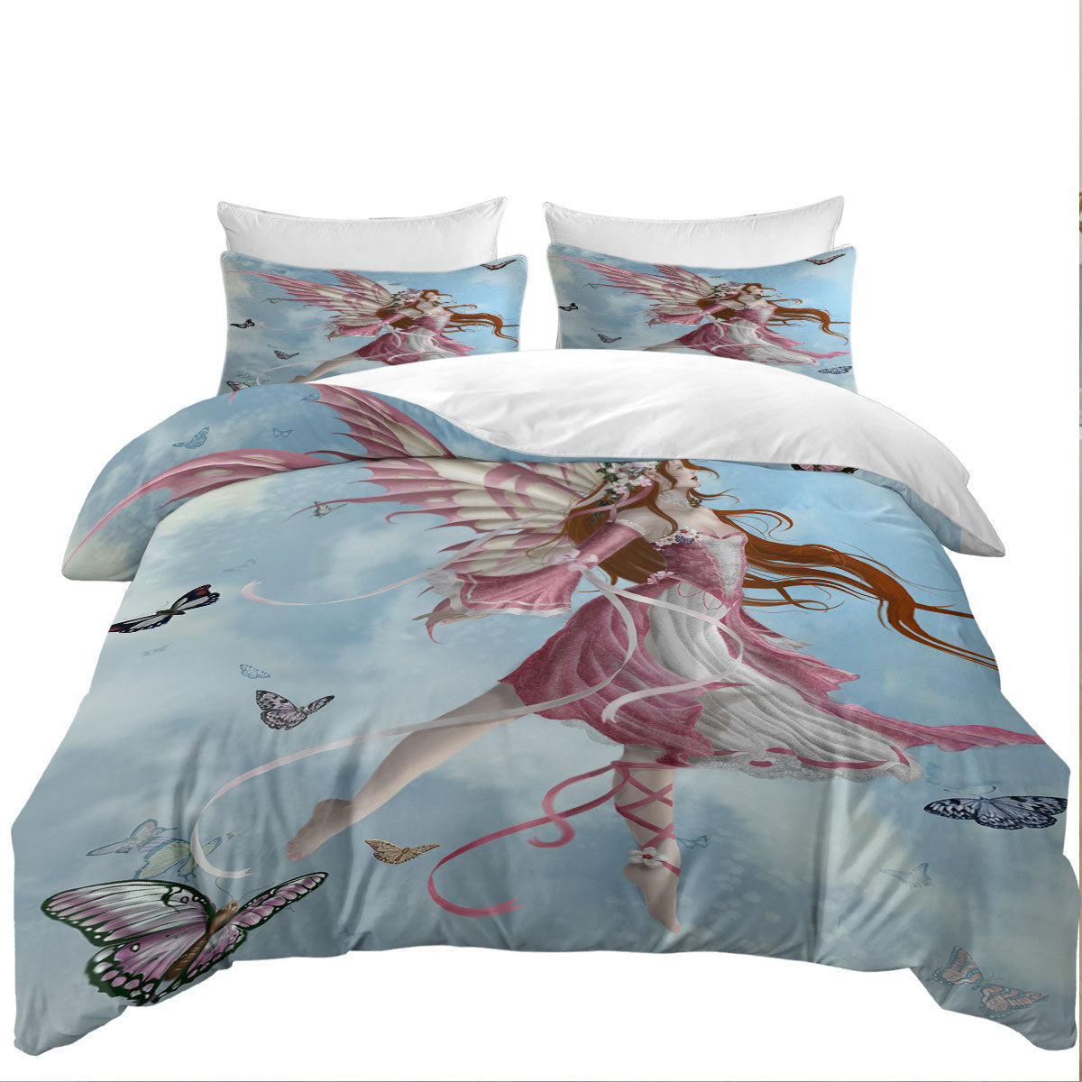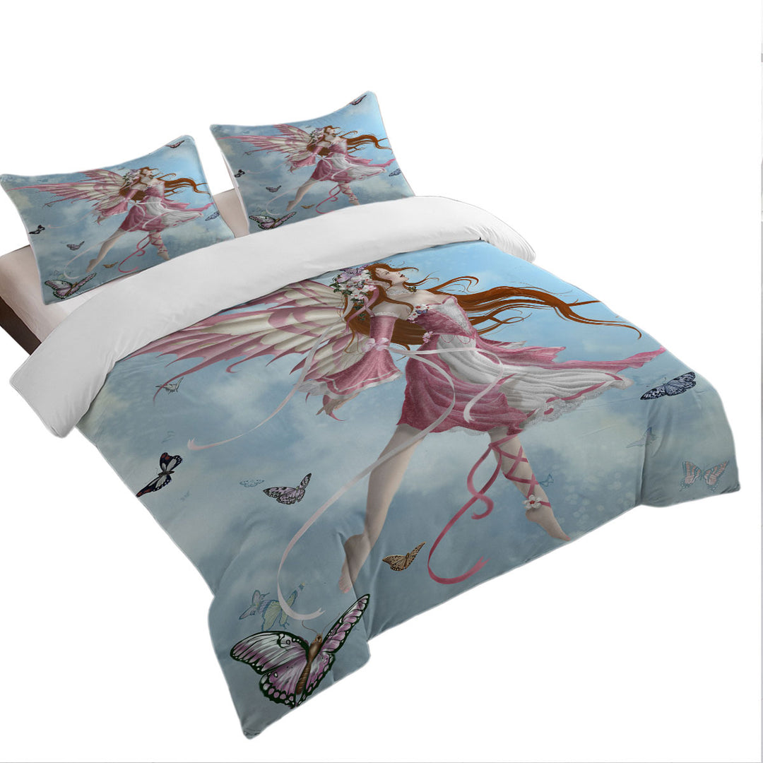 Fantasy Art Pink Butterfly Girl Duvet Cover