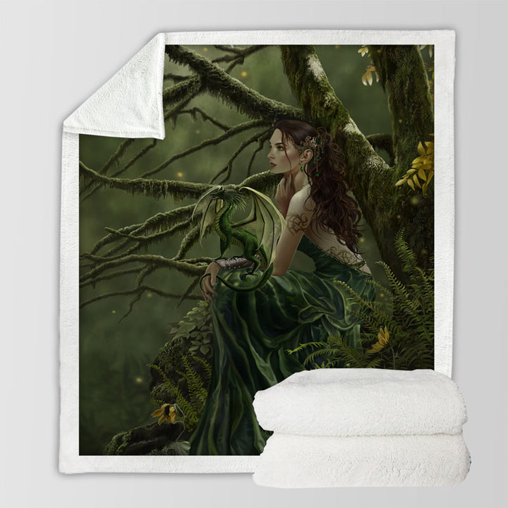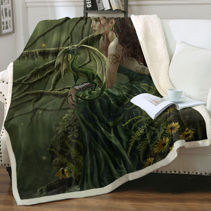 Fantasy Art Queen of Fate and Dragon Throw Blanket