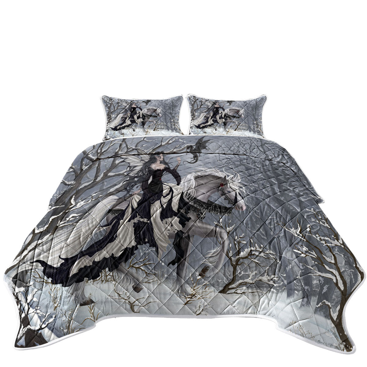 Fantasy Art the Dark Angel and Her Little Dragon Coverlet